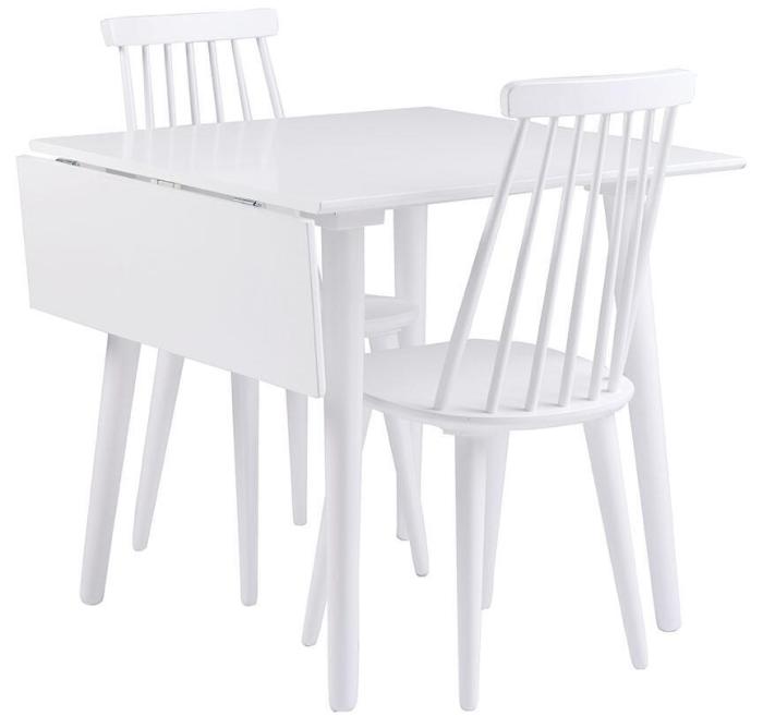 I paketet ingår klaffbord 80 och två stycken pinnstolar i valfri färg.