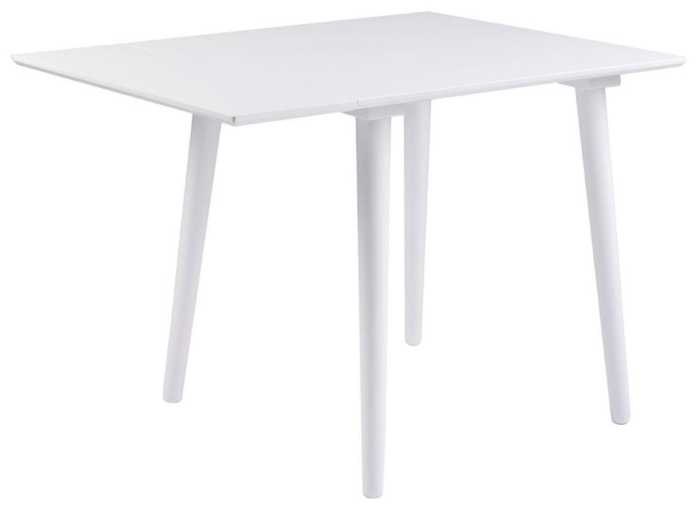 Lotta är en stilren matgrupp med ett klaffbord 80-105x80 cm i skandinavisk design från Rowico. Matbordet matchas här snyggt med pinnstolarna från samma serie som finns i flera härliga färger. Matbordet finns endast i vitt. I serien Lotta finns även ett större 120-165x80 cm klaffbord, ett runt 106 cm och rektangulära bord.