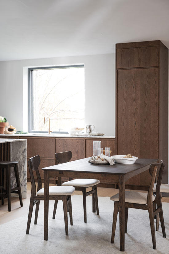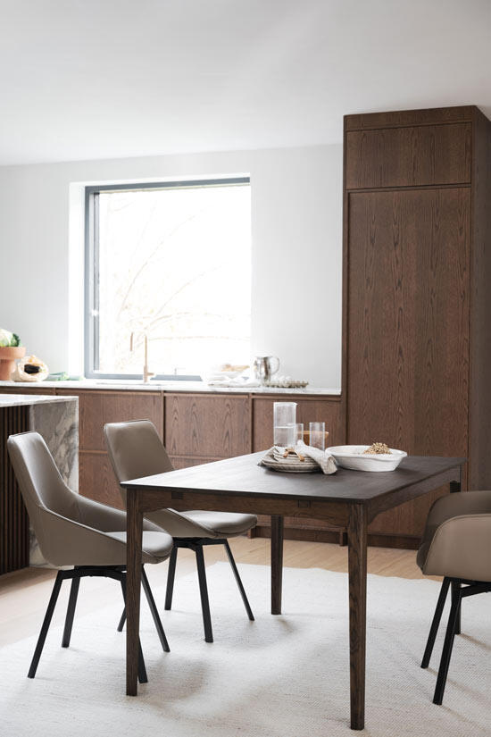 Markham är ett nätt rektangulärt 140x90 cm matbord. Bordet är tillverkat av massiv brunoljad ek med eleganta detaljer såsom en välvd profil under bordet och avrundade ben. Denna design gör matbordet mycket omtyckt och är därmed hållbart över generationer.