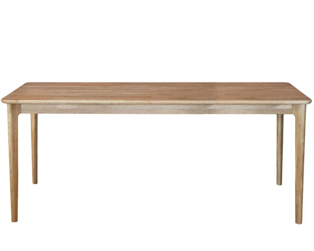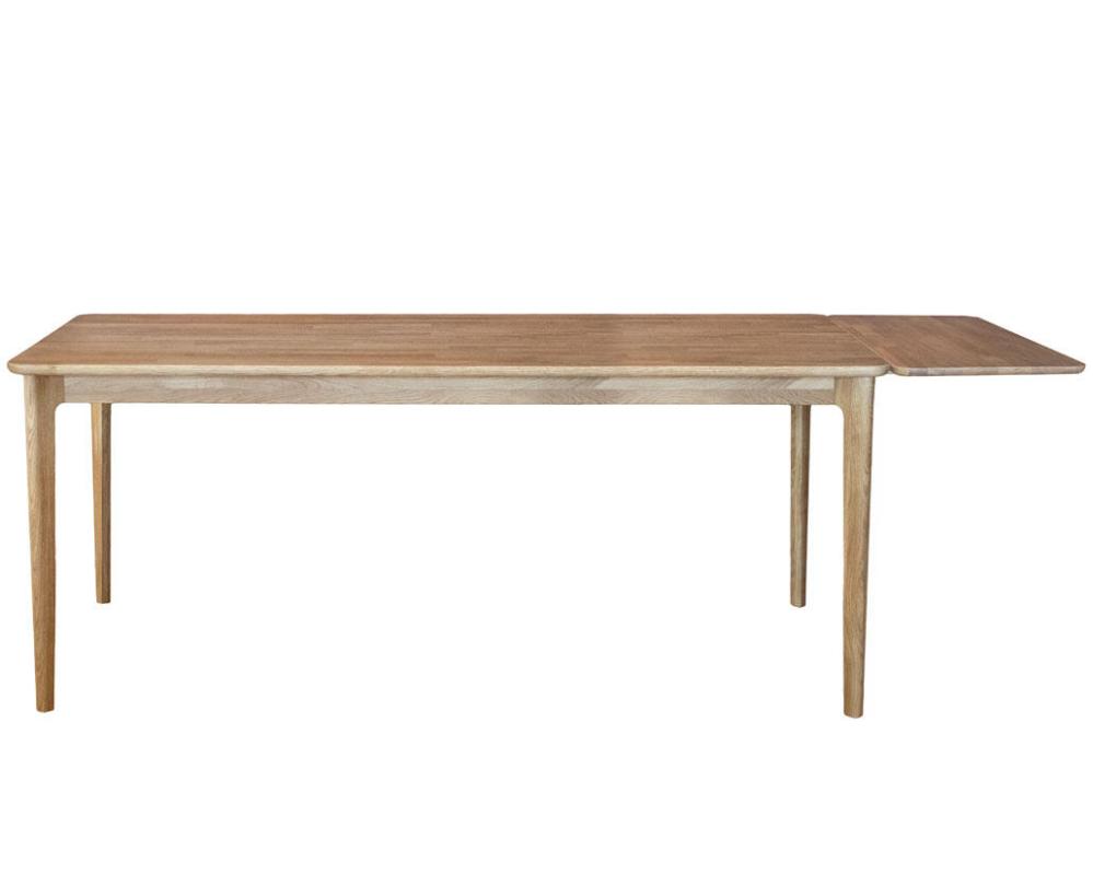 Mejram matbord finns i två storlekar och tre färger, 140x90 och 200x90 cm i oljad, rökoljad eller vitoljad ek. Den här modellen är det större bordet på 200x90 cm som rymligt rymmer tre stolar per långsida.