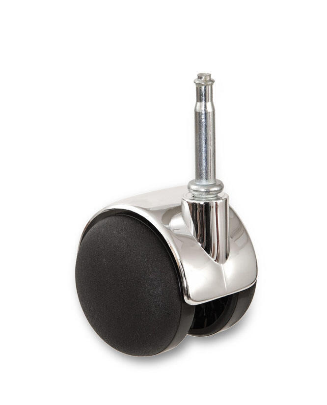 Hjulen har tapp och hylsa och kan beställas i olika färger: Svart/Krom, Svart/Mässing, Svart/Svart och Vit/Vit.