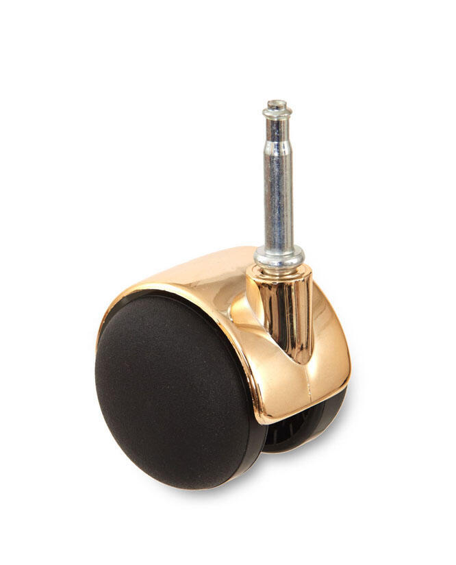 Hjulen har tapp och hylsa och kan beställas i olika färger: Svart/Krom, Svart/Mässing, Svart/Svart och Vit/Vit.