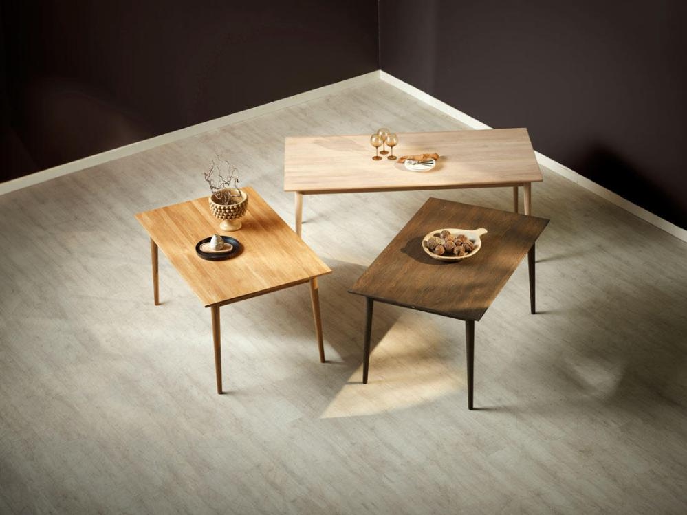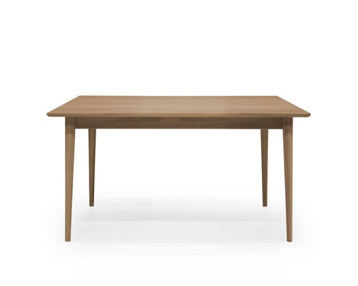 Den här modellen är det mindre bordet på 140x90 cm som rymligt rymmer två stolar per långsida.