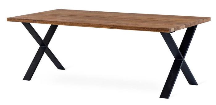 Massiv oljad vildek på en spånskiva med helmassiva kanter runt om och ben i pulverlackerad svart metall