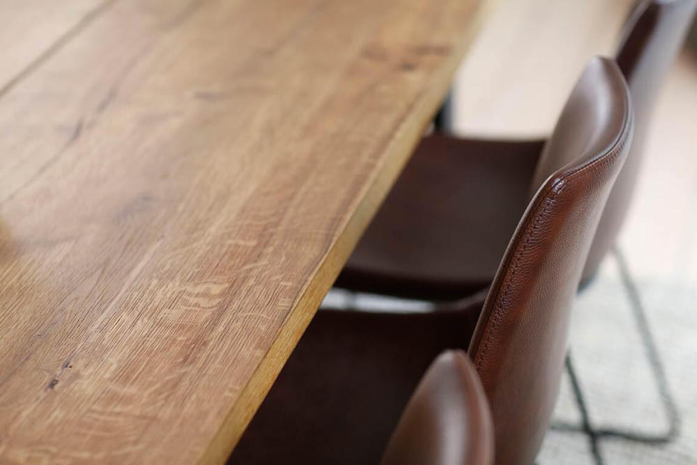 Narvik är ett matbord med härlig rustik känsla. Välj bland tre underreden, tillverkat av svartlackerad metall med en bordsskiva av fanérad oljad ek. Bordet är 160x100 cm, köp till insticksklaffar á 50 cm om ett större bord önskas. Observera att träriktningen på tilläggsskivan är i motsatt riktning. Narvik bordet finns i storlekarna 160x100 cm och 210x100 cm samt ett runt 130 cm. Gör matplatsen fullständig med övriga delar från serien som avlastningsbord och buffé.