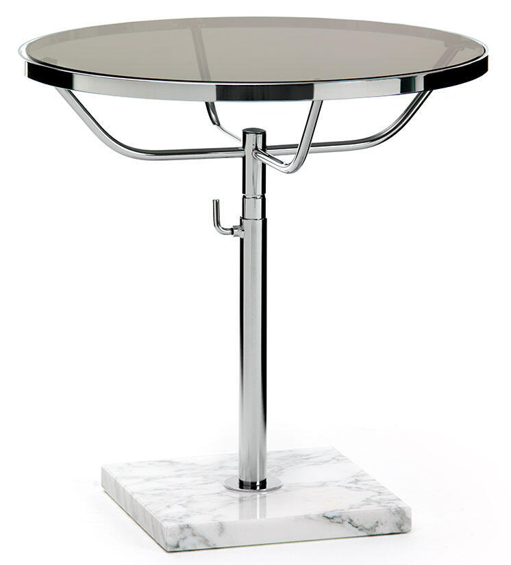 Höj- och sänkbart stativ i krom med en fot i vit Carrara eller svart Nero Marquina marmor