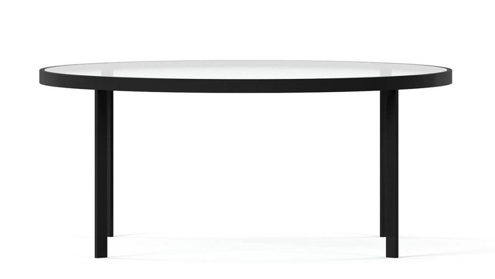 Metallbord tillverkad av plattjärn i svart med skiva av glas, Metallbord tillverkad av plattjärn i svart med träskiva i Black Oak eller Burned Walnut alternativt skiva av glas