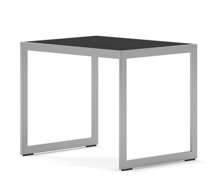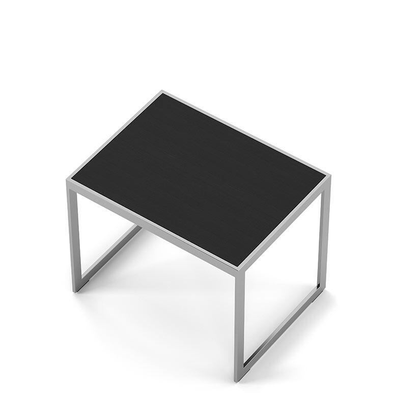 SidobordSquare 2000 här i rektangulärt 56x41 cm utförande. Möbelserien Square kännetecknas av en ram i silvergrå pulverlackad plattjärn med skiva i antingen glas eller trä. Träskivorna finns i färgen Black Oak eller Burned Walnut.