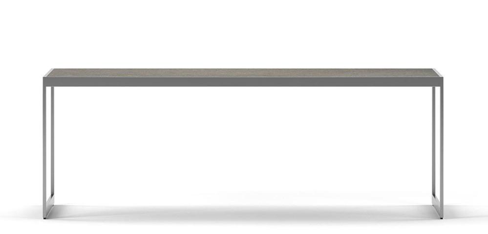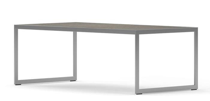 Soffbord Square 2000 här i rektangulärt 122x62 cm utförande. Möbelserien Square kännetecknas av en ram i plattjärn i silvergrå pulverlack med skiva i såväl glas, trä som porslinkeramik.