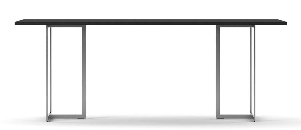 Det stilrena matbordet Square kommer från Englesson, med en rejäl bordsskiva i färgerna Black oak eller Burned walnut fås ett stabilt köksbord för hela sällskapet eller familjen. Det smala underrede av silvergrå pulverlackad plattjärn ger god plats för många stolar.
