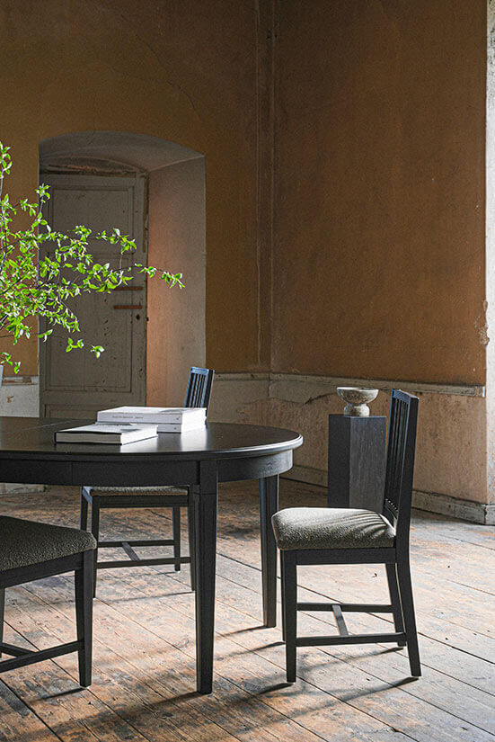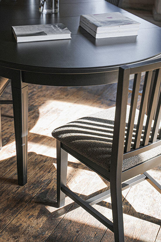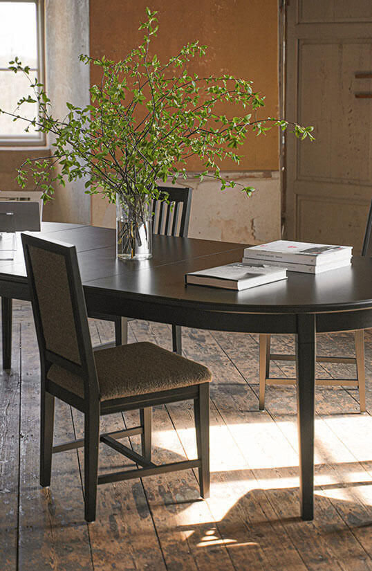Stockholm 584 är ett enkelt men ack så elegant runt matbord i storleken 115 cm, med möjlighet att förlänga upp till maxlängden på 259 cm, då 3 stycken ilägg á 48 cm ingår i priset. Bordet är handmålat i flera färger och har fått sin stil och elegans från traditionellt svenskt hantverk. Rena linjer med fin balans mellan då och nu. Serien Stockholm från Englesson innehåller ett brett utbud av kvalitetsmöbler.