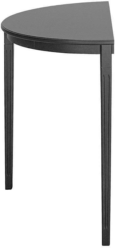 En av delarna ur serien är detta halvmånebord. Den stilrena formen på konsolbordet passar perfekt som avlastningsbord i valfritt rum eller som praktiskt hallbord. Sidobordet tillverkas av FSC-certifierad massiv furu med miljövänlig MDF. Möbeln har sedan handmålats för hand i svart, grå eller vit.
