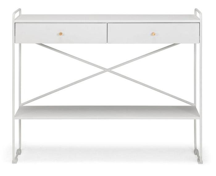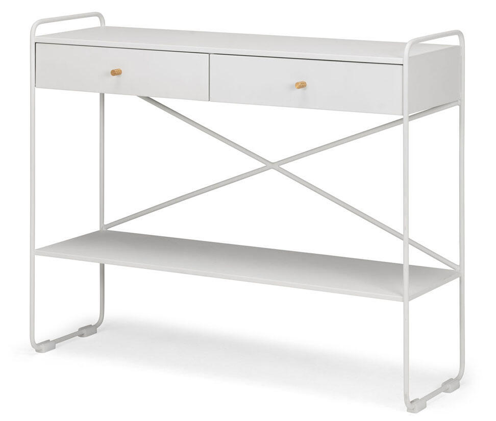 Street avlastningsbord i ett elegant och modernt utförande. Mässingsknoppar på lådorna förhöjer bordets känsla. Lacken har struktur som gör möbeln mer motståndskraftig mot repor och skavmärken. Lådorna är med fullutdrag för smidig och rymlig förvaring.