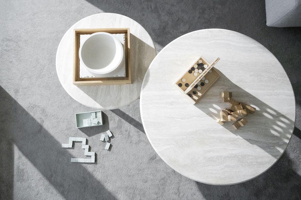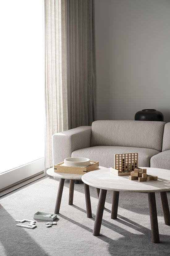 Bordets mjuka runda formspråk skapar en fin kontrast till den livliga och robusta stenskivan. Taransay soffbord finns i två olika storlekar, placera dem separat eller tillsammans som satsbord. Finns i flera utföranden. I kollektionen Taransay ingår även matbord.