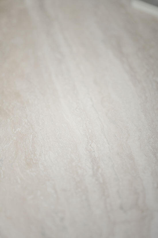 Tänk på att använda underlägg och direkt torka upp spill för att bevara stenskivans utseende. Observera att travertin är ett naturmaterial och det förekommer därför variationer i struktur och färg. Små håligheter är inte defekter utan unika drag för varje stenskiva.