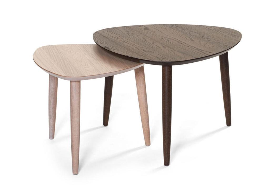 Team soffbord / sidobord i 50-60 tals inspirerat utseende, med lätt rundande kanter. Team finns i flera storlekar och former, vilka passar snyggt tillsammans. Bilderna visar olika kombinationer av borden. Observera att endast det stora 70x70 cm ingår i detta pris.