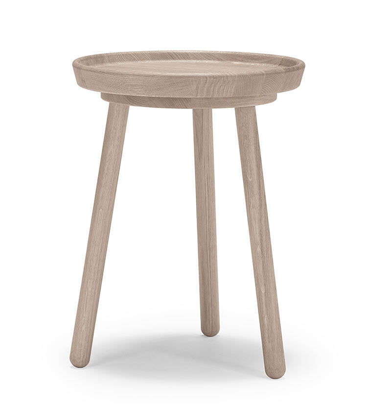 Den här artikeln är helt i massiv ek, diameter 38 cm. Välj på bordshöjd 43, 50 och 57 cm.