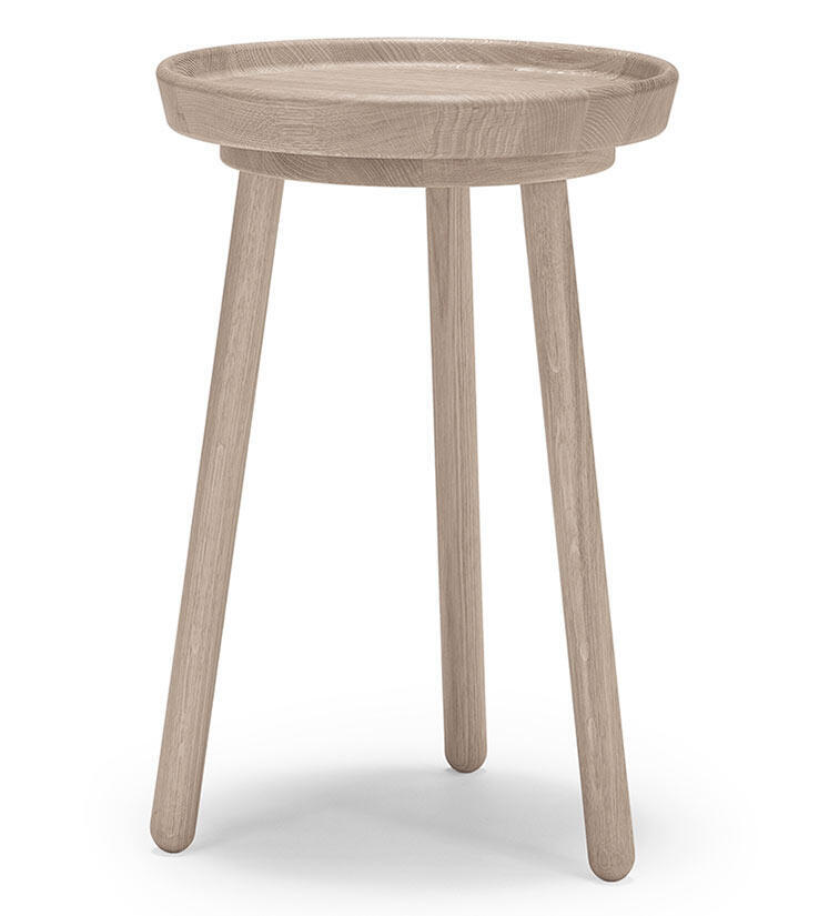 Den här artikeln är helt i massiv ek, diameter 38 cm. Välj på bordshöjd 43, 50 och 57 cm.