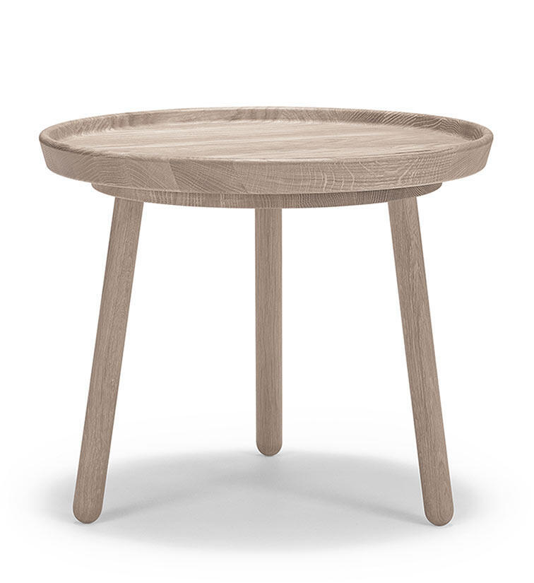 Den här artikeln är helt i massiv ek, diameter 52 cm. Välj på bordshöjd 43, 50 och 57 cm.