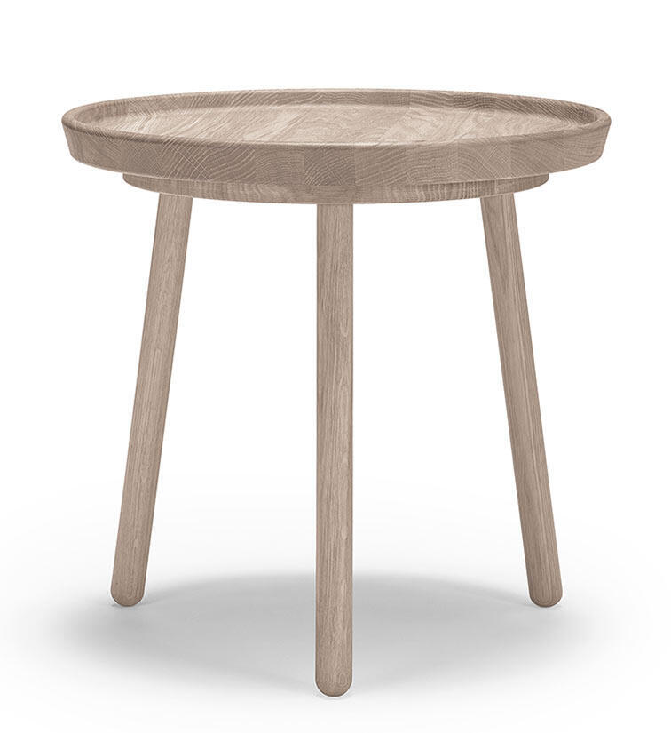 Den här artikeln är helt i massiv ek, diameter 52 cm. Välj på bordshöjd 43, 50 och 57 cm.