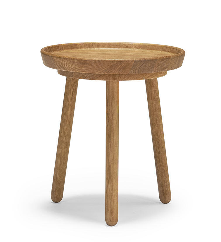 Den här artikeln är helt i massiv ek, diameter 38 cm. Välj på bordshöjd 43, 50 och 57 cm.