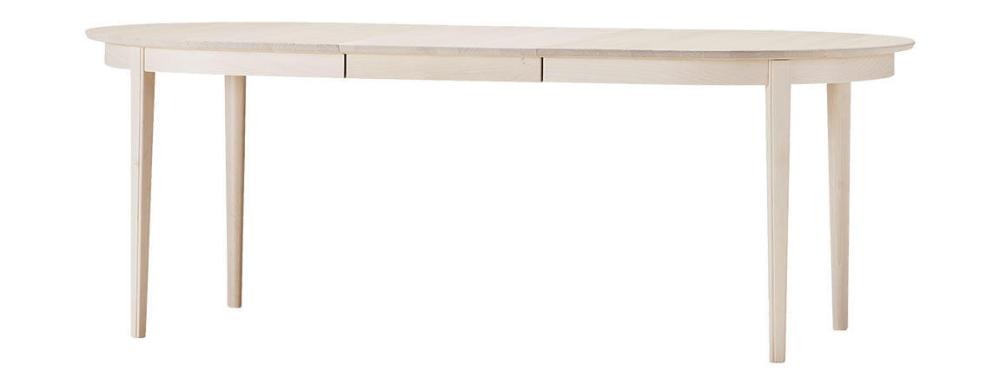Höjd från golv till sargens nederkant är 66,6 cm och mellan bordsbenen med 1 iläggsskiva är avståndet 155 cm, med 2 iläggsskivor 205 cm, med 3 iläggsskivor 255 och med 4 iläggsskivor 305 cm.