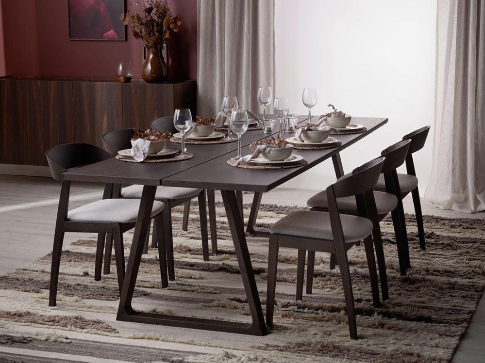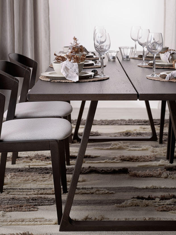 Matbord Ven är ett klassiskt bord av hög kvalité. Bordet finns i flera material och ytbehandlingar. Den här artikeln består av den brunbetsade varianten, tillverkad i lackad ek/ekfanér.