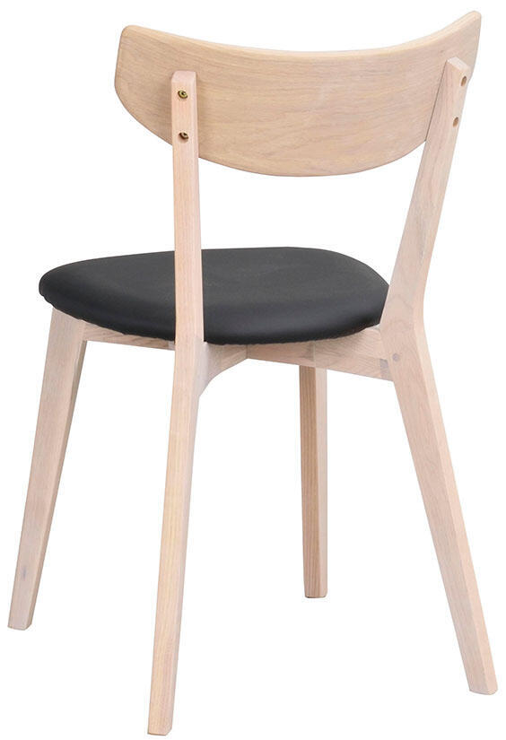 Yumi matbord i skandinavisk design med lätt utställda ben tillsammans med fyra stycken klassiska trästolar. Runt bord i högkvalitativ vitpigmenterad ekfanér och ben och sarg i massiv ek.