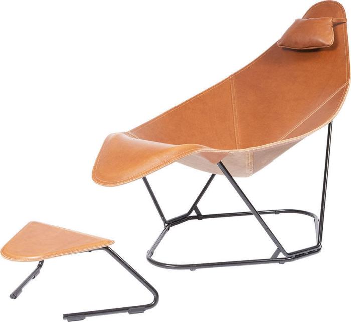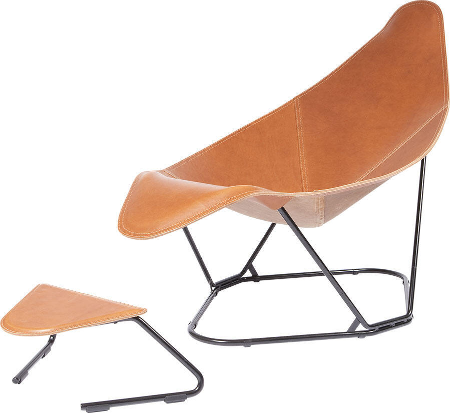 Fåtöljen tillverkas i Sverige av Cuero Design och finns i flera fina läderfärger, i paketet ingår fotpall och nackkudde.