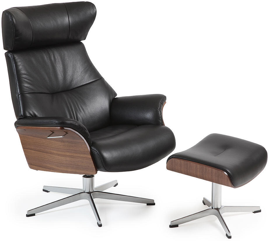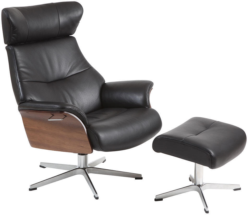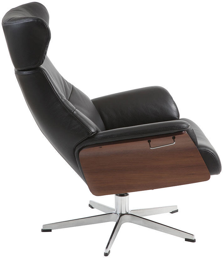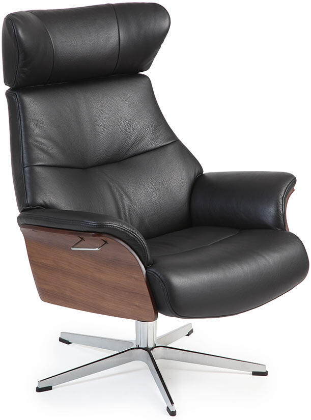 - Läder Fantasy Black med armstödssidor i valnöt med Swivel formgjuten aluminiumfot