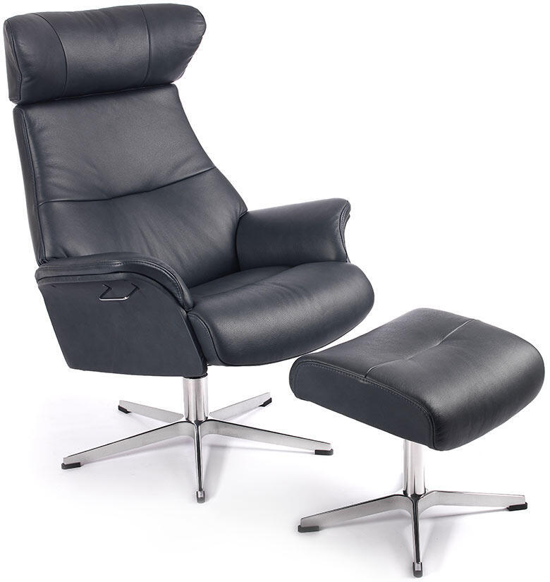 - Läder Bolzano Dark Blue med helklädda armstödssidor med Swivel formgjuten aluminiumfot