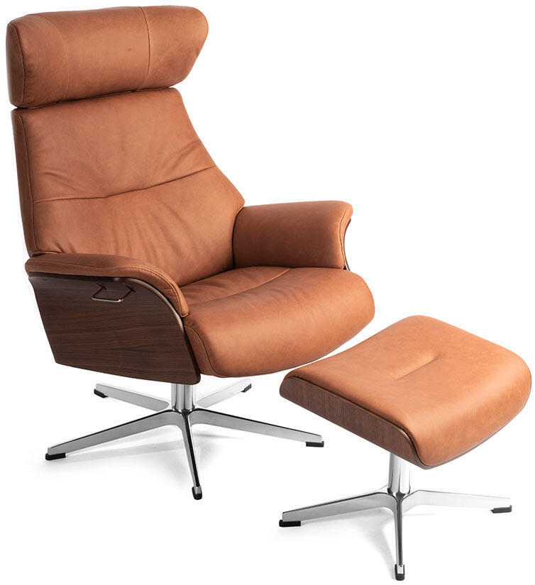 - Läder Jeselo Cognac med armstödssidor i valnöt med Swivel formgjuten aluminiumfot