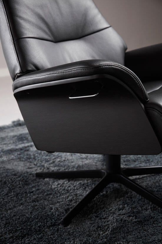 - Läder Fantasy Black med armstödssidor i valnöt med Quattro formgjuten aluminiumfot