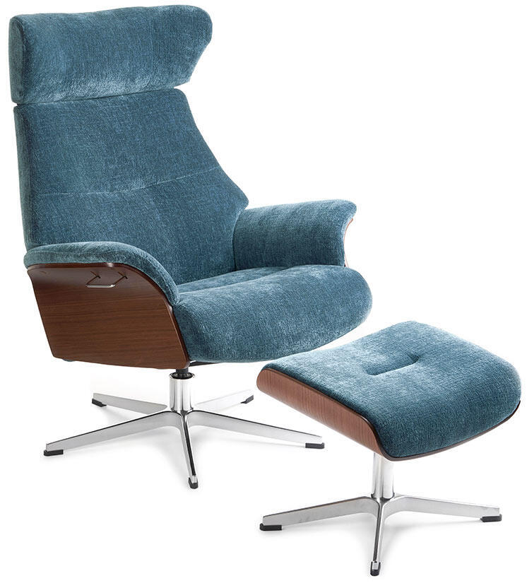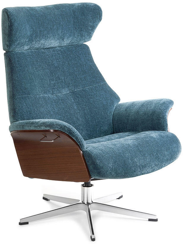- Tyg Alice Petrol med armstödssidor i valnöt med Swivel formgjuten aluminiumfot