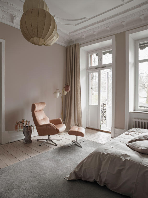 Det snurrbara underredet är utrustat med Return Memory, vilket gör att fåtöljen stannar i ursprungsläge när man lämnar den. Nackstödet är höj- och sänkbart och går att ställa in i olika vinklar.