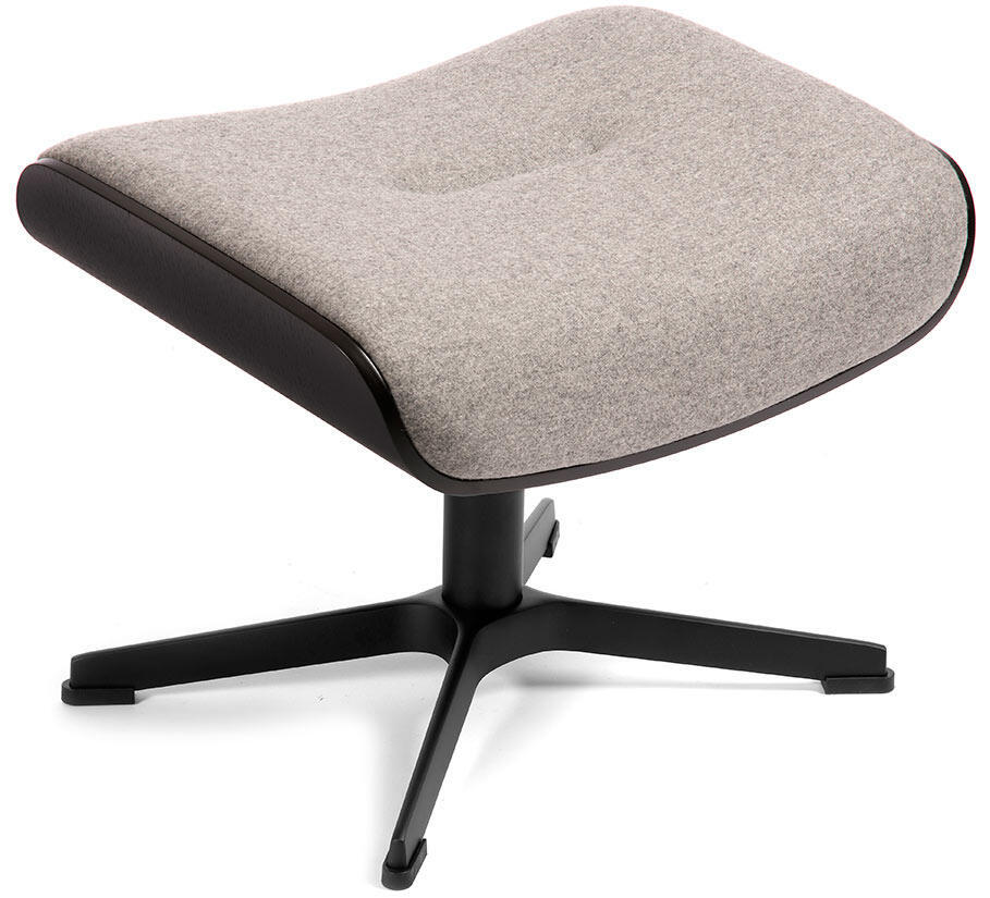 Fotpall tillhörande Air fåtöljen. X-foten i aluminium går att få i 2 höjder - standard och +3,5 cm. Fotpallens sidor kan väljas i formpressad ytfaner av lackad ek, obehandlad ek, svartbetsad ek, lackad valnöt eller helklädd i tyg/läder (vid val av fårskinnsklädsel på pallen levereras helklädda sidor i matchande tyg och färg).