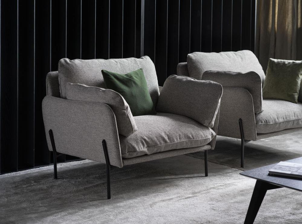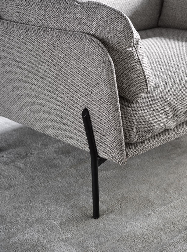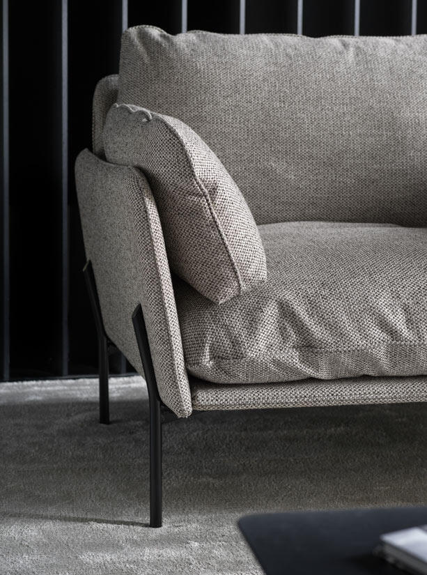 De eleganta benen utgör en bärande del av serien Aldon. Det hårda skalet kontrasterar smakfullt med de breda, tjocka sits- och ryggkuddarna vilka skapar ett djärvt men inbjudande uttryck. Den högre ryggen försäkrar att även längre individer får det stöd som de önskar.
