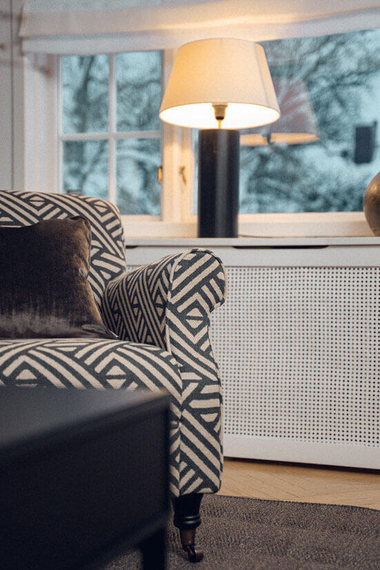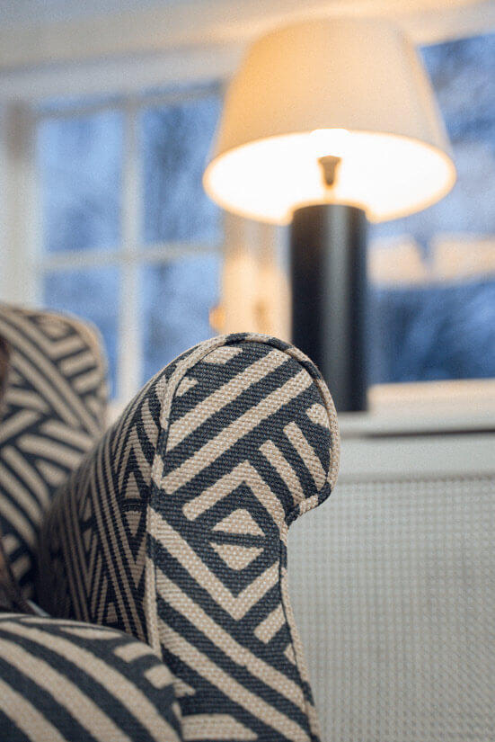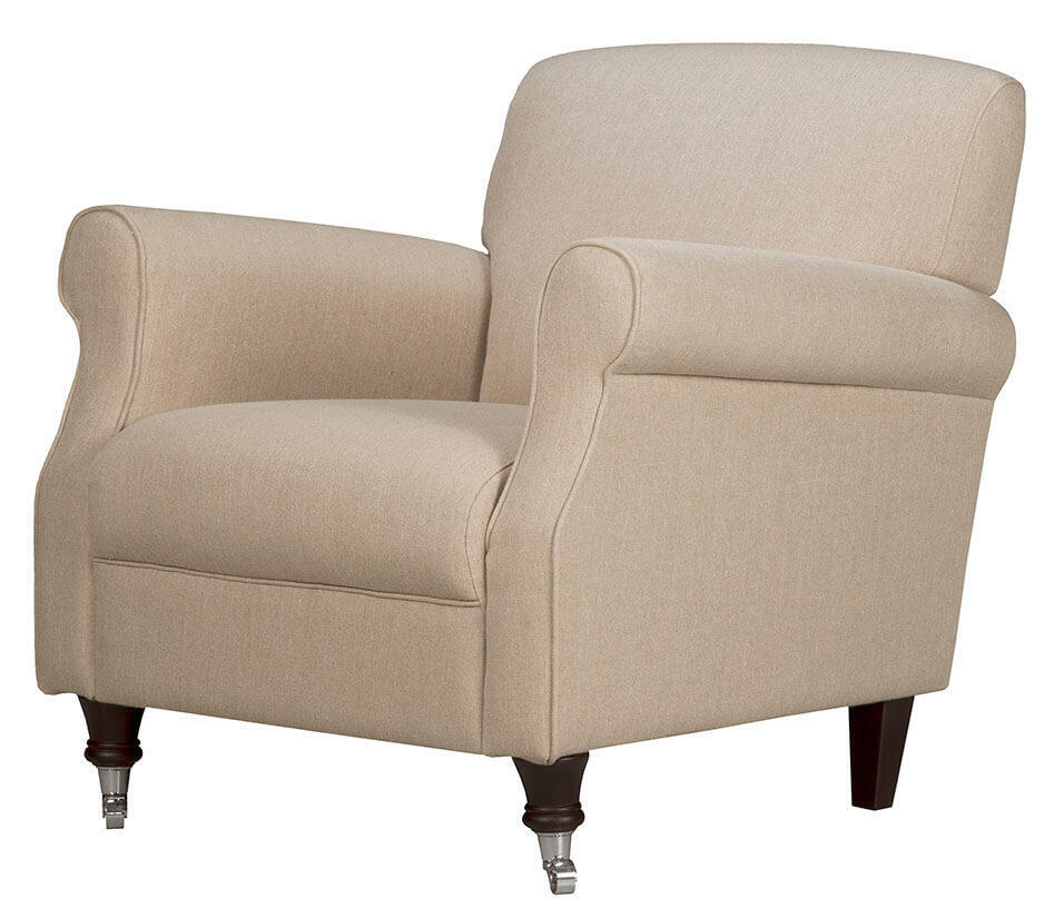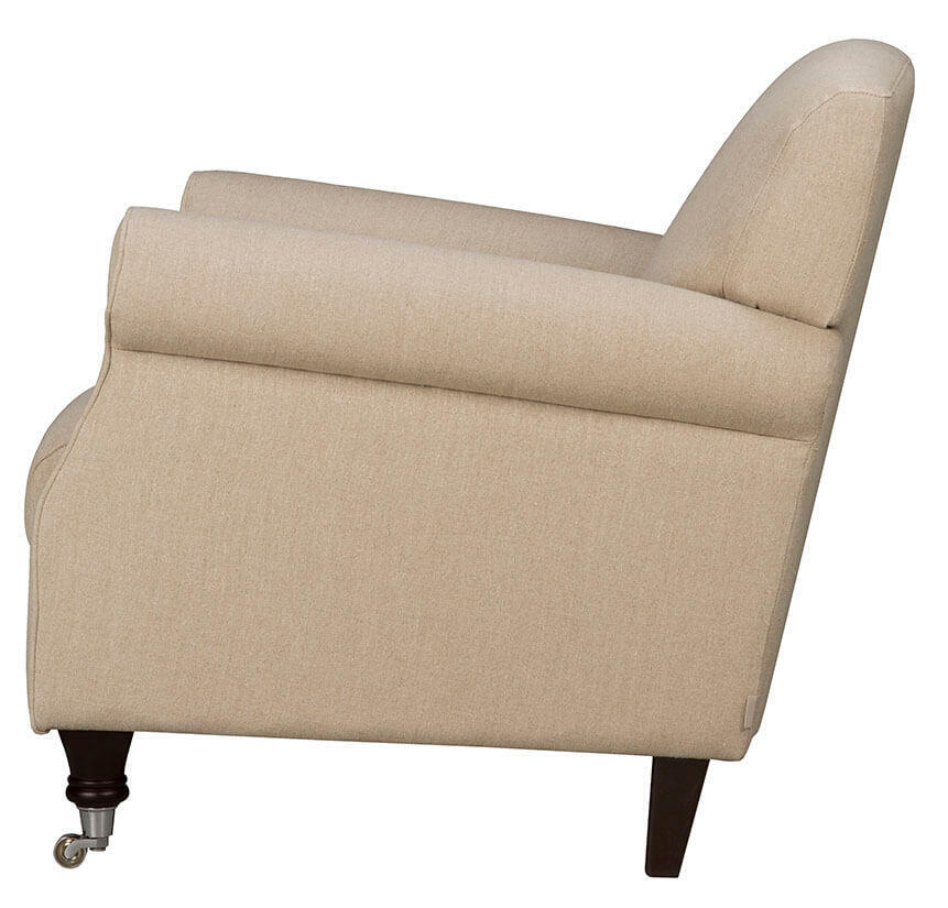 Fåtöljen Burlington har en klassisk look med ett stramt utseende då både rygg och sits är fast, med en fast tygklädsel. Kombinera ett vackert tyg med träben i tre färger med eller utan hjul. I fysisk butik finns ett större utbud av tyger i olika mönster, färger och material att välja på.