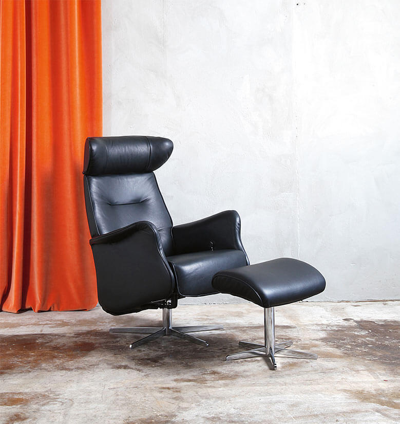 Fotpall som matchar snurrfåtöljen Caliber. Likt fåtöljen kan du välja på en rad tyg, läder och fårskinnsklädslar i flera färger och mönster.