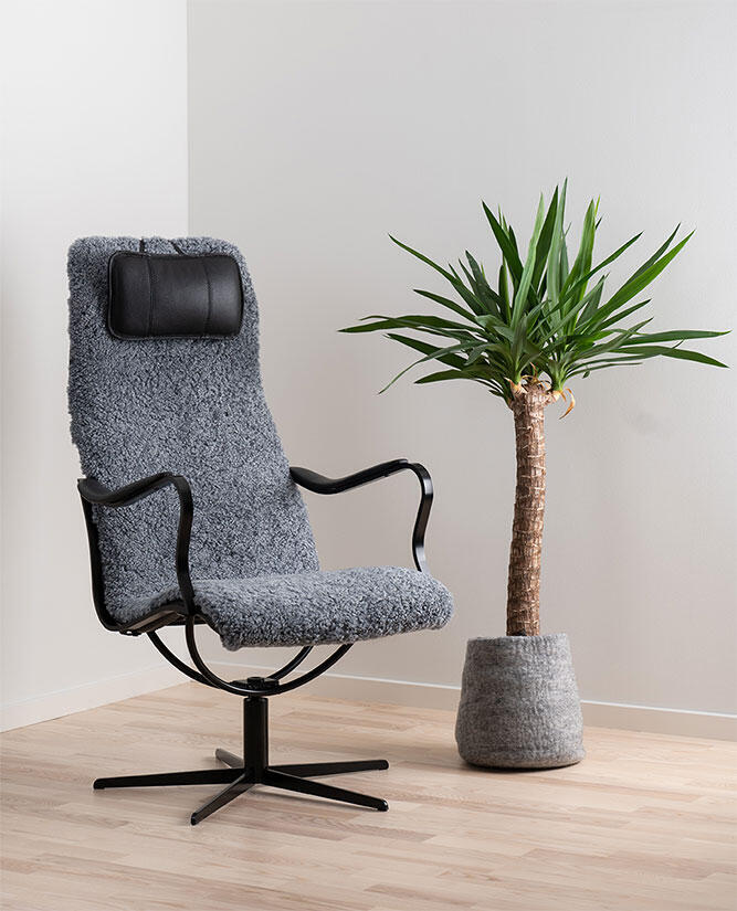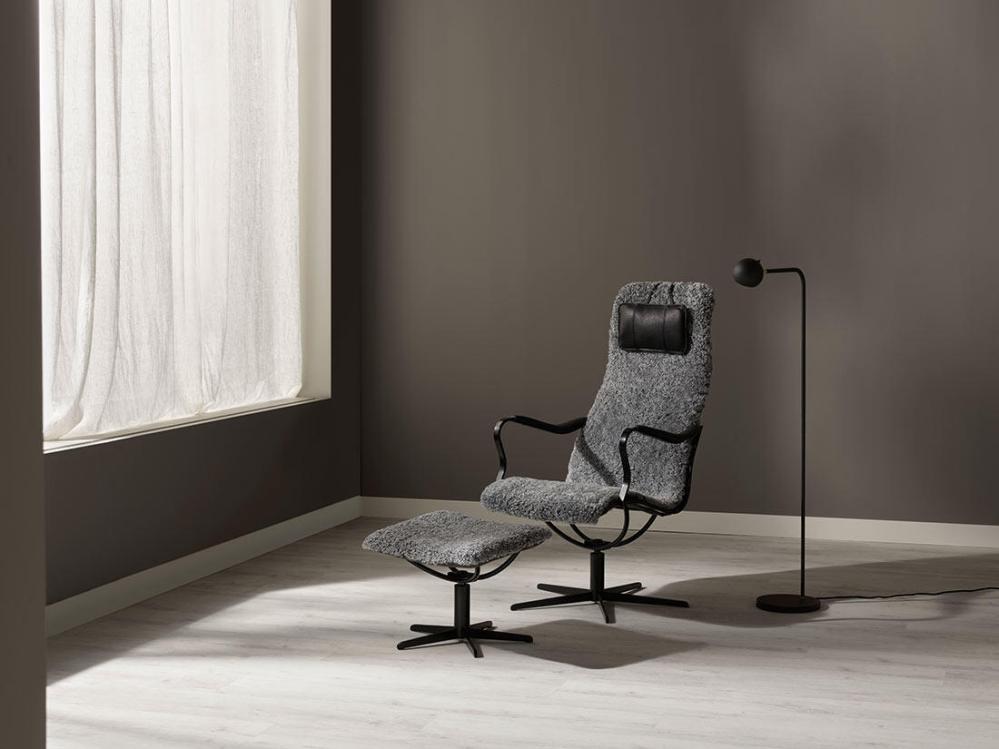 Bröderna Anderssons Chic Fårskinn Special Grey Fåtölj och fotpall