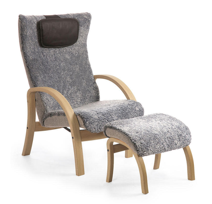 När form och funktion gör det lätt att sitta rätt. Easy fåtöljen är en fantastiskt skön fåtölj som går att fälla steglöst bakåt för en vilopaus. Den har också ett bekvämt reglerbart nackstöd och armstödskuddar i läder. Klädseln av fårskinn är ett helt otroligt material att sitta på. Det ser inte bara inbjudande och mjukt ut utan det gör också att du alltid sitter i rätt temperatur oavsett om det är varmt eller kallt.