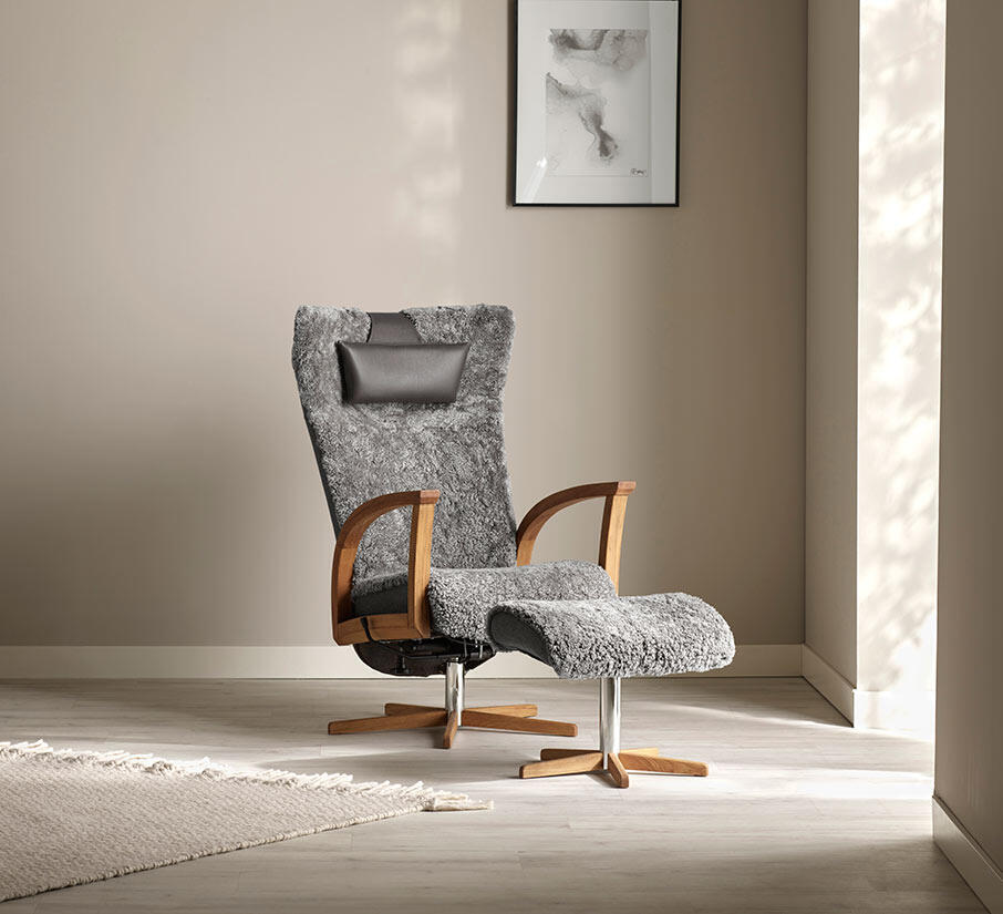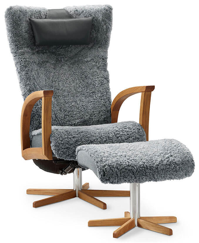 Ekenäs Snurr Fårskinn Grey Fåtölj och fotpall