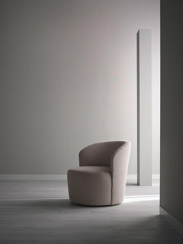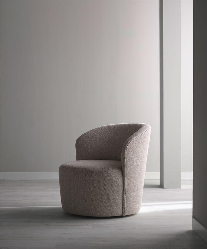 Fåtöljen Flair har en inbjudande rund form med enkla detaljer som ger ett mjukt och exklusivt intryck. Tjädersömmar förhöjer fåtöljens elegans medan snurrfoten ger hög funktionalitet.