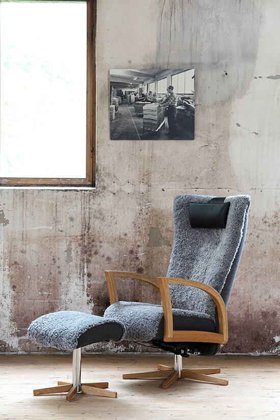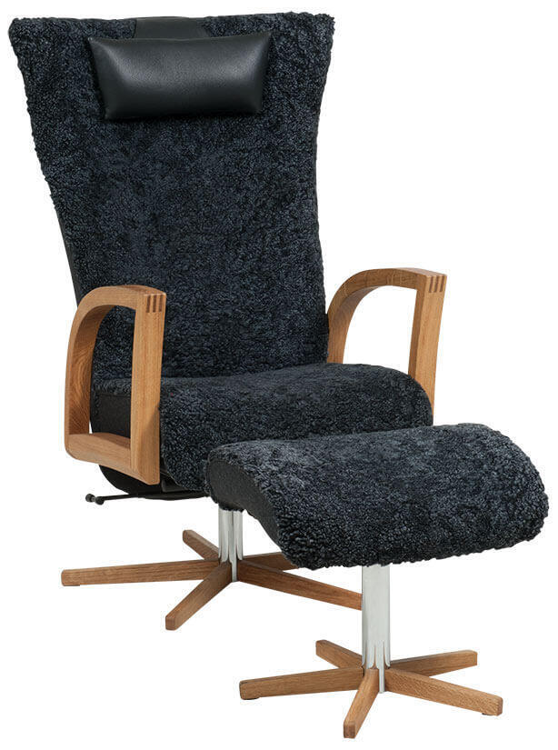 Focus Snurr Fårskinn Fåtölj och fotpall