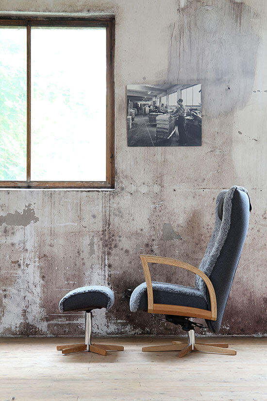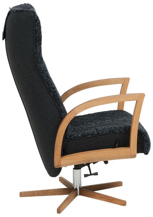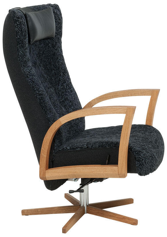 Focus snurrfåtölj är en stilig, klassisk fåtölj för läshörnan. Pris inklusive fotpall och nackkudde. Tillval finns för längre personer som önskar högre rygg, +8 cm.