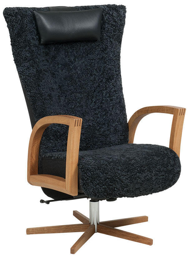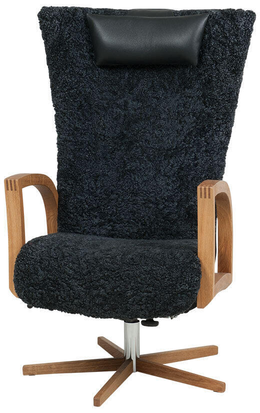 - Vid val av fårskinn Koks är bakryggen i tyg Facet färg 09 svart med en svart nackkudde i Classic läder.