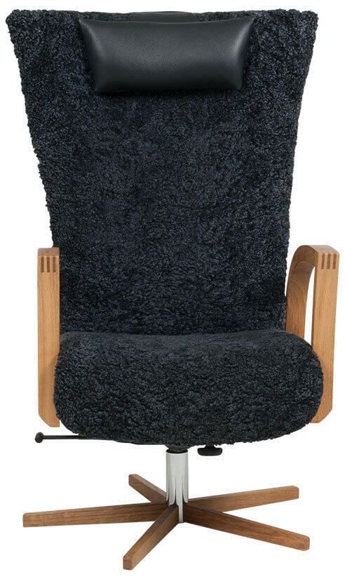 - Vid val av fårskinn Grey är bakryggen i tyg Facet färg 04 mörkgrå med en svart nackkudde i Classic läder.