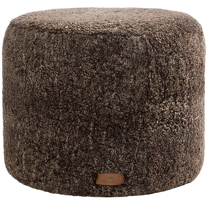 Shepherd Frida. En rund sittpuff i korthårigt fårskinn med ursprung ifrån Australien. Sittpuffen är uppbyggd utav en fast del i botten som gör att puffen håller sin form och ovandel i skumgummi för bästa komfort. Puffens klädsel i fårskinn är avtagbar och tvättbar med dragsko i botten. Undersida i vävd textil. Alla fårskinn är naturliga och kan därför variera något i sin naturliga struktur. Höjd 40 cm, Ø 50 cm.