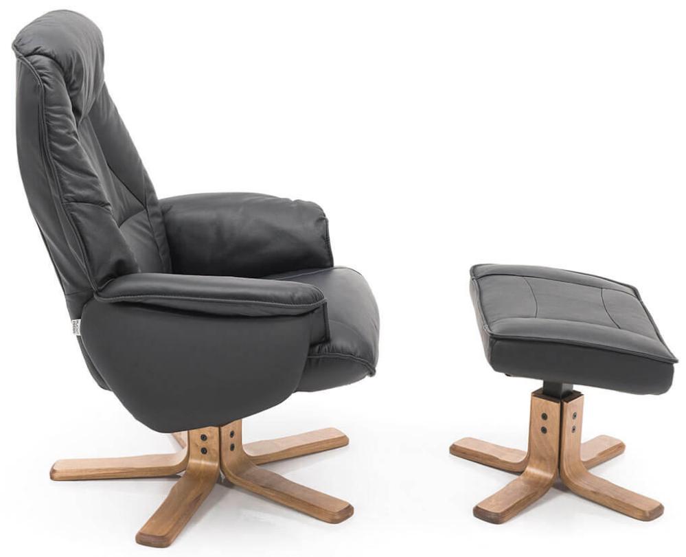 Swedese Lamino Oljad Ek Fårskinn Black Fåtölj och fotpall