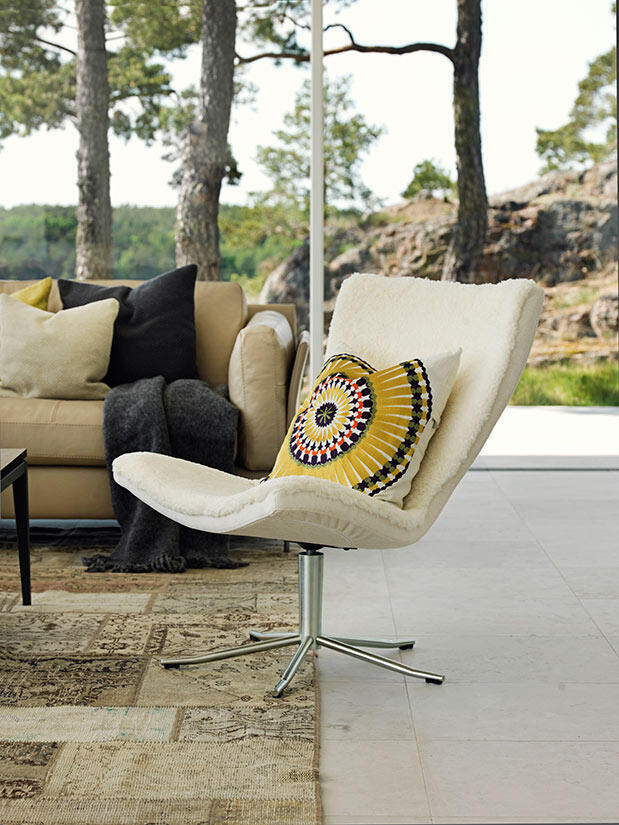 Svenska design som tar ut svängarna! Fåtöljen Gyro har snurr med återgång till ursprungsläge. Välj på flera tyg, läder och fårskinnsfärger. Fot i svartlack eller formgjuten aluminium. Design av Jan Ekström.